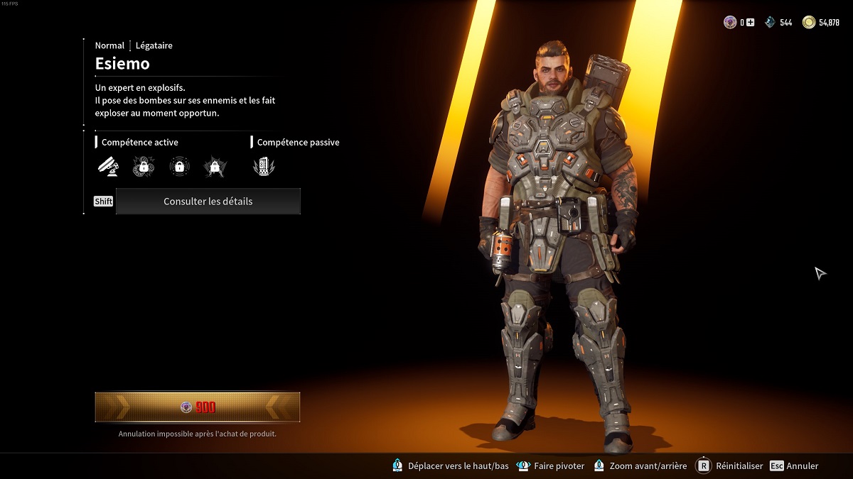 - Mine téléguidée : Esiemo place une mine téléguidée sur sa position. Une fois placée, la mine téléguidée s’envole vers un ennemi situé dans son champ de détection et se fixe à