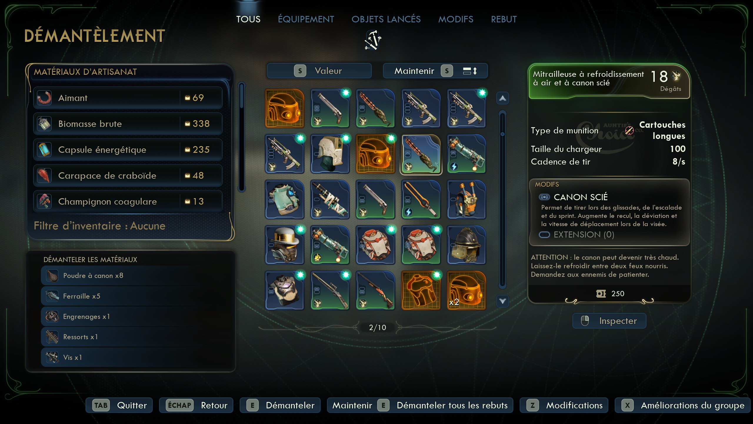 - En démantelant des équipements, notamment les armes à feu utilisant justement des balles classiques, mais aussi les grenades à fumigène qui pour nous ne sont pas des plus utile, du moins dans notre approche de gameplay qui est plus portée sur les escarmouches et donc les attaques-surprises. Vous allez en trouver régulièrement surtout si vous êtes du genre à looter chaque coin et recoin comme nous