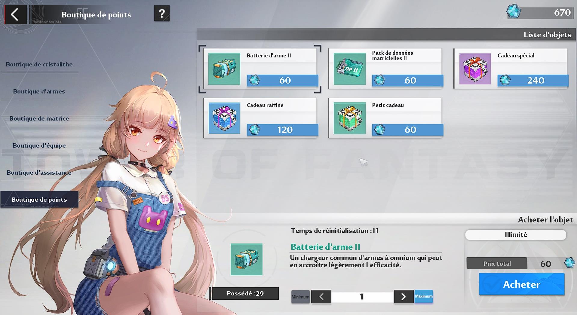 La page des deux boutiques vous permettant de récupérer des cadeaux pour vos simulacres (crédits : Tower of Fantasy)