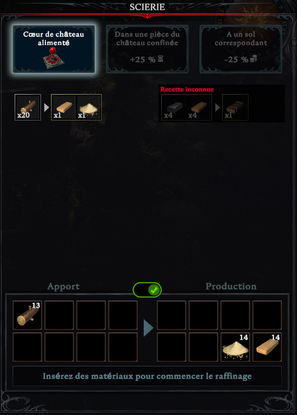 Pour utiliser une scierie, vous devez d’abord vous assurer qu’elle est alimentée par votre cœur de château.