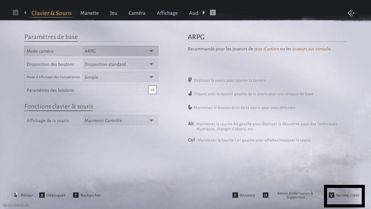 Rendez-vous ensuite dans Service client, accessible via la touche « V », et utilisez l’option Dissocier le compte.