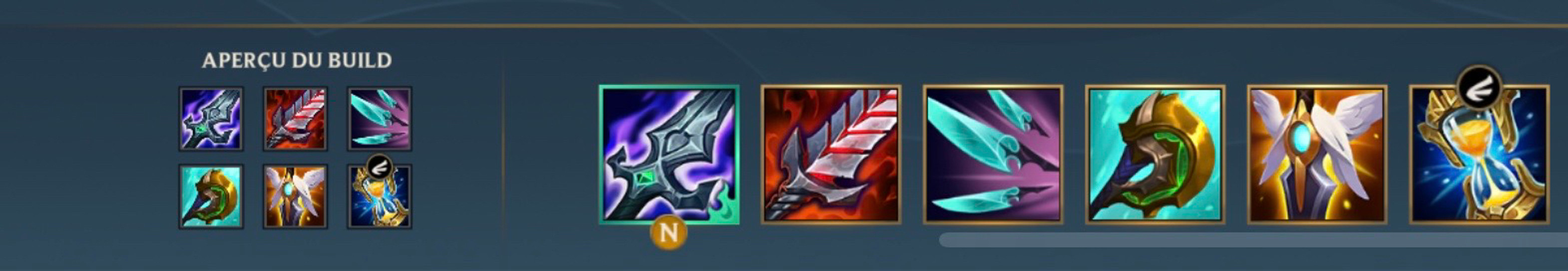Concernant le build du champion, il est principalement basé sur des items AD, comme la plupart des champions qui ont des stats très offensives. Retrouvez ci-dessous le meilleur build