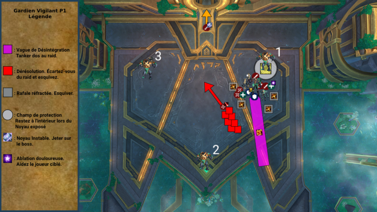 Placement lors de la phase 1 du combat contre le Gardien Vigilant