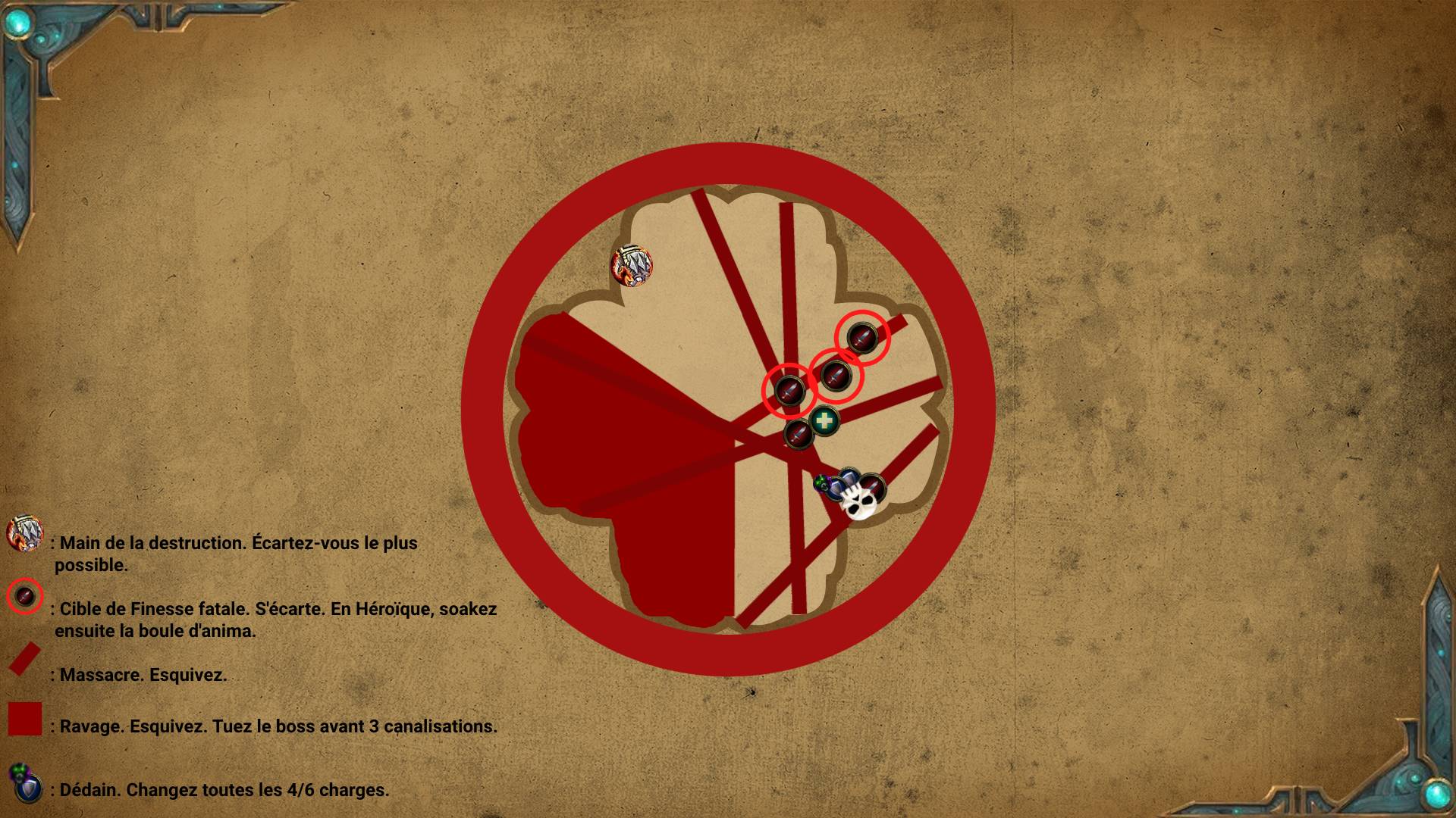 destructrice. À la fin de la série d’attaques, tout le raid est repoussé. Restez toujours dos à la salle, jamais dos au vide au dos à l’anneau d’anima entourant la salle pour ne pas être