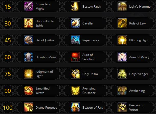 - Tous les Paladins partagent désormais une même ressource : la puissance sacrée. Certaines techniques comme Frappe du croisé et Marteau de