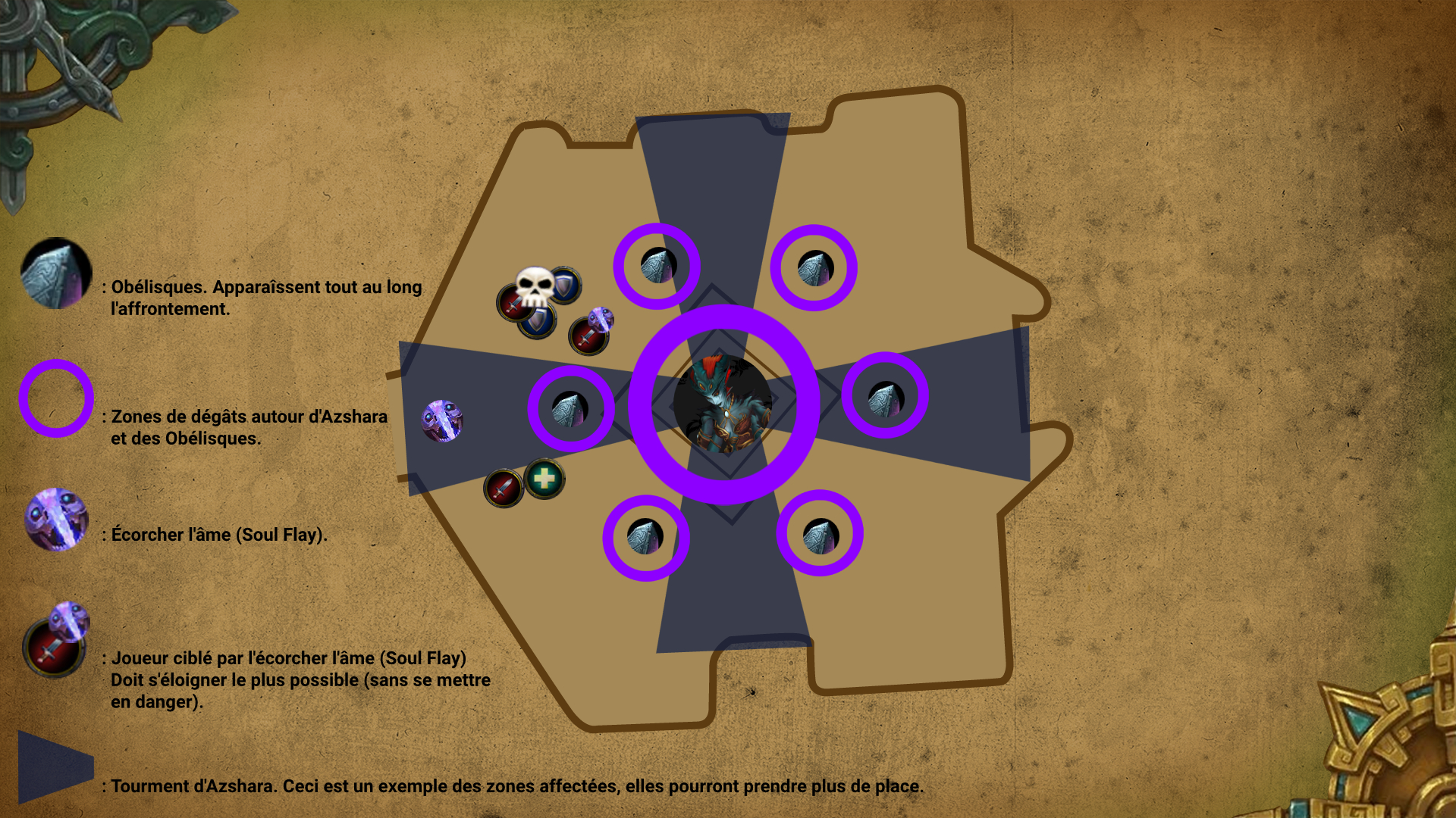 (tous : autres joueurs, Azshara, boss, obélisques, bords de la salle) pour l’envoyer dans le portail de vide.