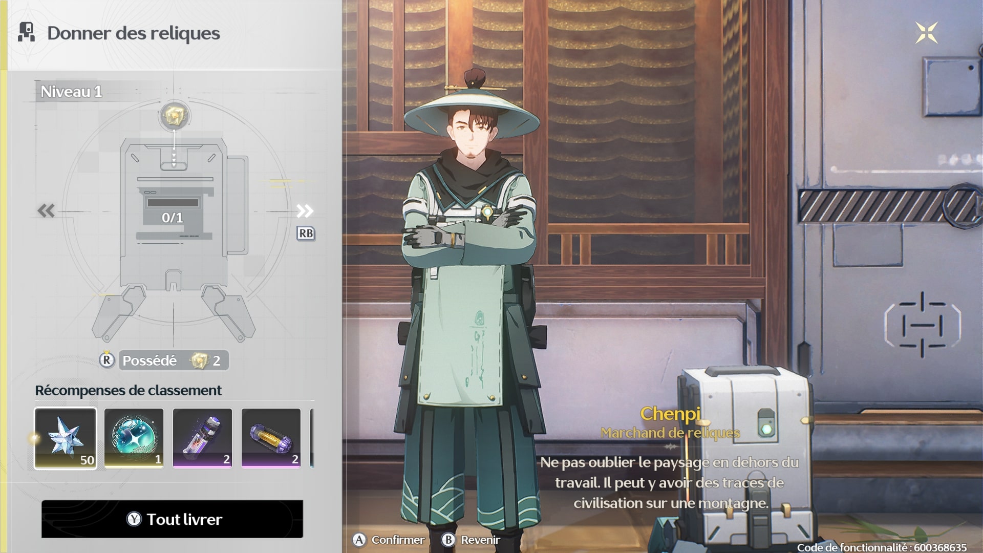 Lors de votre progression, vous allez débloquer une nouvelle mécanique : la livraison de Boites de Sonance. Il vous suffira de livrer ces boites au marchand de reliques à Jinzhou