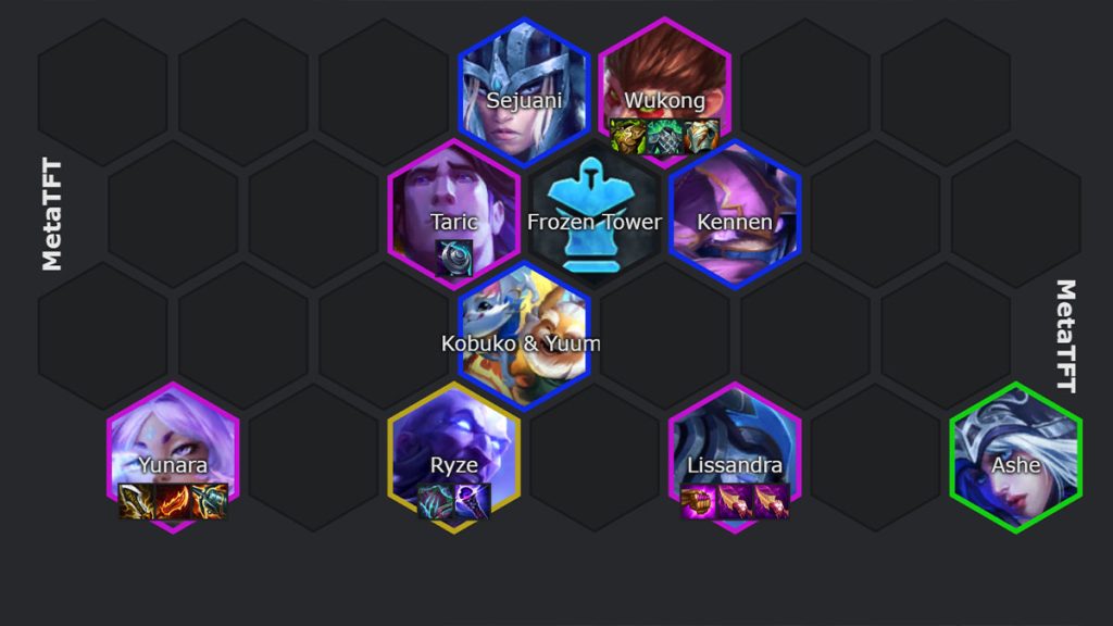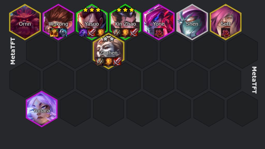Cette composition est absolument à connaître sur ce patch. Yunara est un carry extrêmement puissant lorsqu’on lui laisse le temps de s’exprimer et c’est exactement ce que permet cette composition.