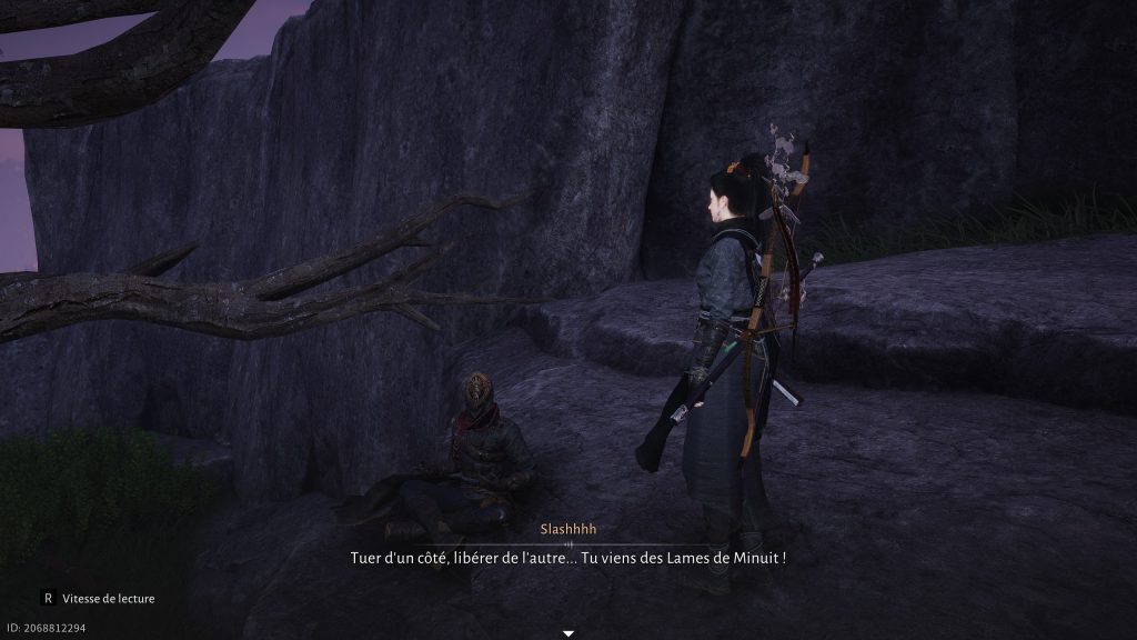 Une fois sur place, vous allez voir différentes dépouilles ainsi qu’un homme à l’agonie, qui vous indique qu’il a été attaqué par un membre de la Secte des Lames de Minuit. Suivez les traces et, sur votre carte, vous allez voir une nouvelle indication : Icchantika, le donneur de la quête permettant de rejoindre cette secte. Après votre conversation, il vous confie un jeton ainsi qu’un objectif : éliminer quelqu’un, que ce soit un joueur ou n’importe quel ennemi du monde.