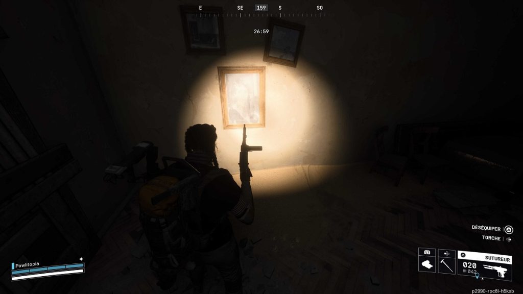 Maintenant que vous êtes dans la pharmacie, dirigez-vous directement à son premier étage. Notre premier objectif se trouve au niveau des trois tableaux qui se situent juste en face des escaliers par lesquels vous venez de monter. Pour récolter les informations, interagissez avec en appuyant sur la douche demandée.