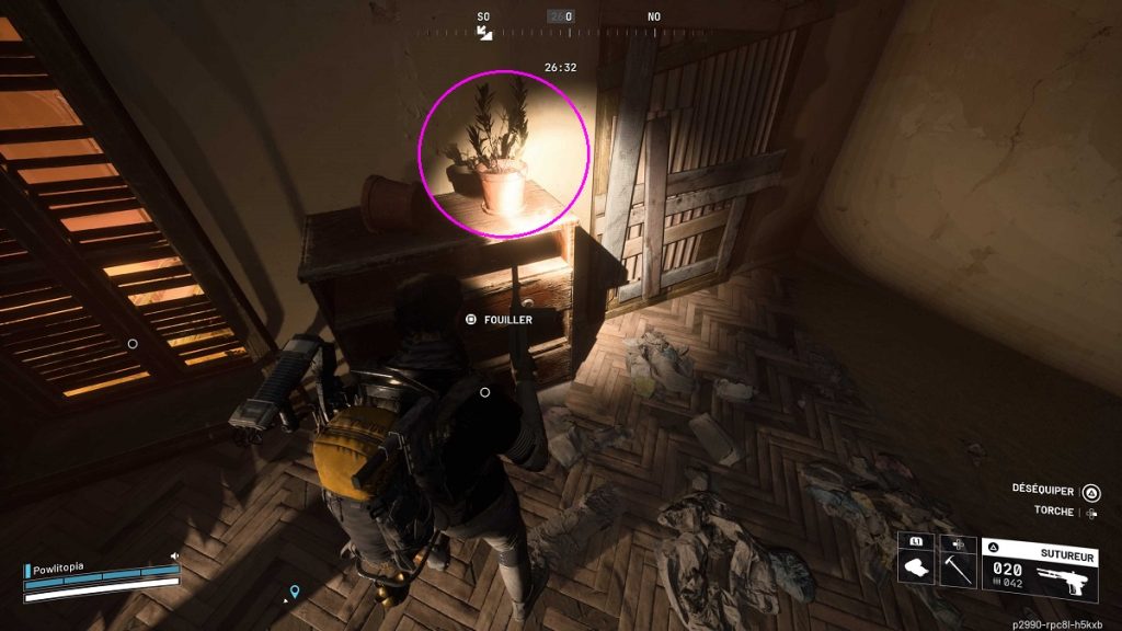 Notre troisième objectif se trouve dans un pot de fleurs, posé sur une commode : pas de mystère, vous devrez effectuer la même manipulation.