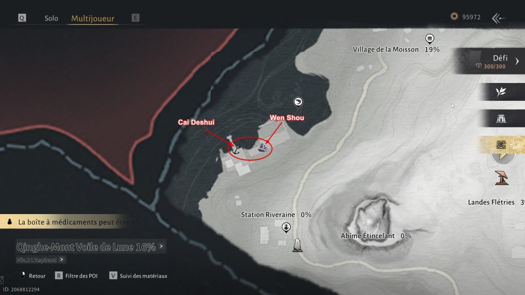 Une fois que vous avez obtenu ces 170 pages, vous devez aller voir Wen Shou, l’artisan permettant de créer ce bateau, situé à la Station Riveraine, tout à l’ouest de la zone de départ et légèrement au sud-ouest du Village de la Moisson. Pour le repérer, voici une carte.