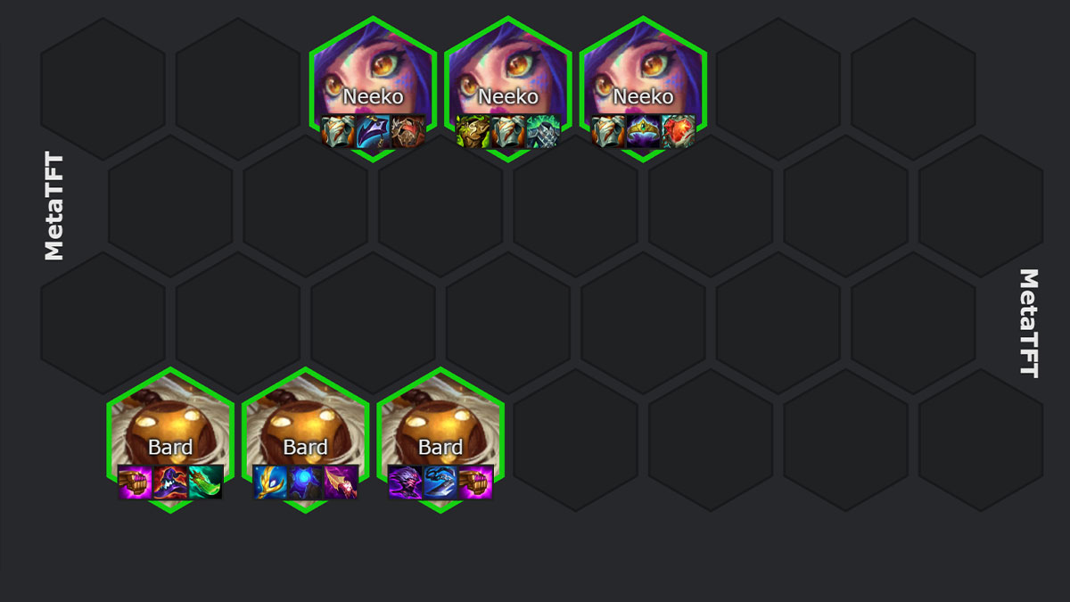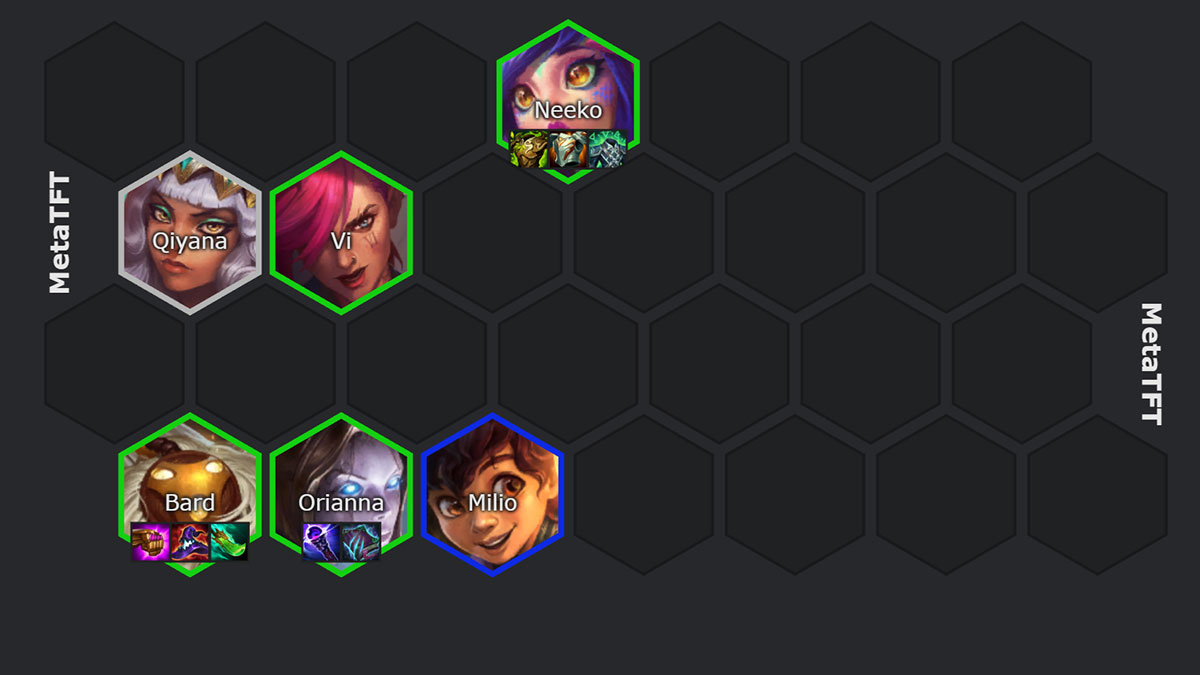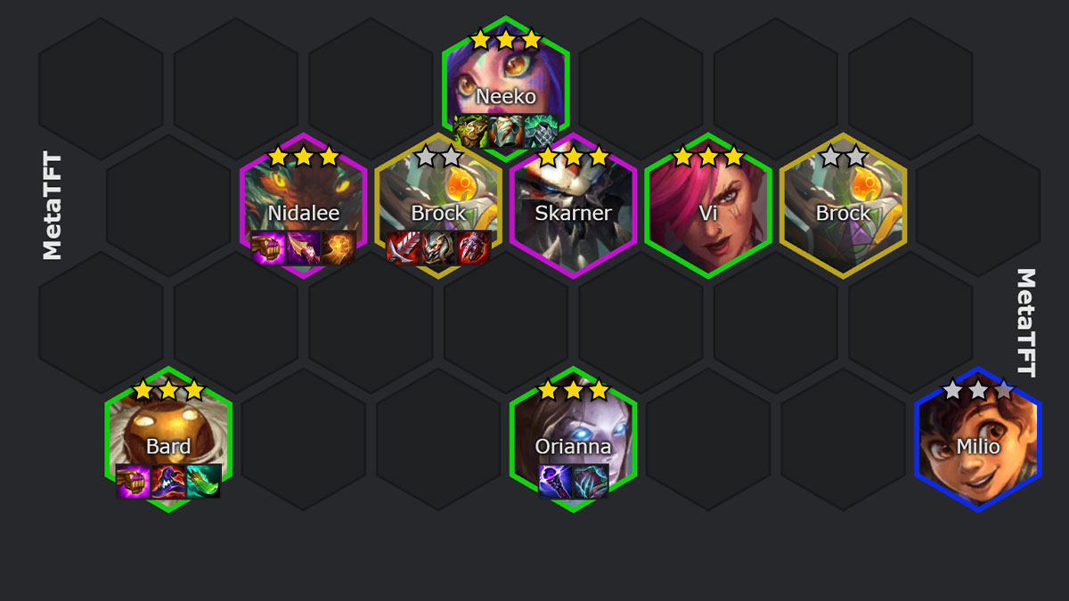 - Si ton board tient bien : reste niveau 6 et au-dessus de 50 gold jusqu’à ce que tu trouves Bard, Vi, Neeko et Orianna 3 étoiles