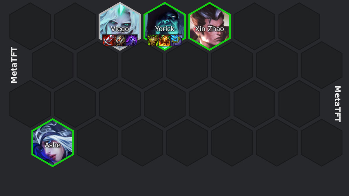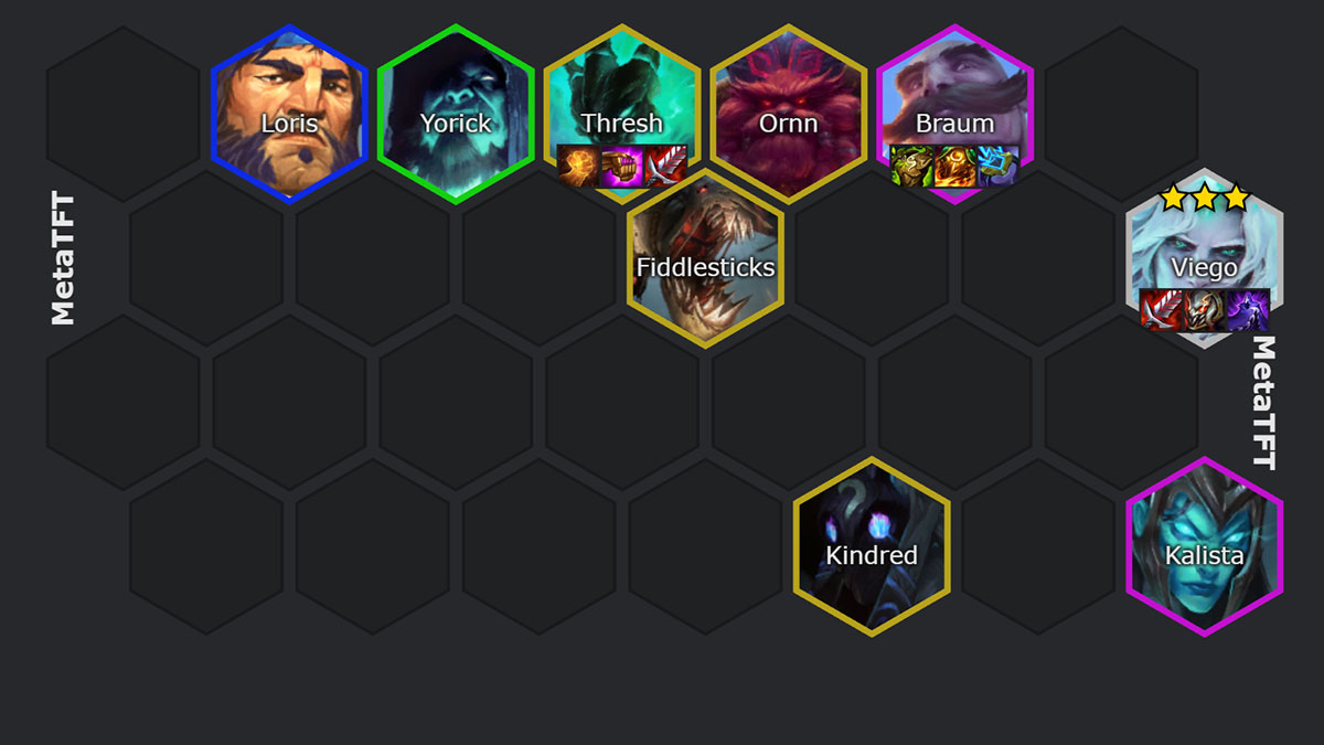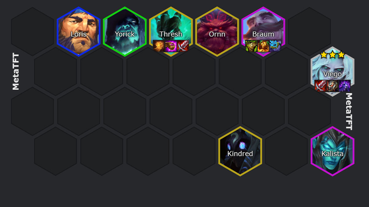 L’objectif est donc de jouer Viego reroll en carry jusqu’en late game pour ensuite laisser la main à Thresh et Kalista. Pour ce faire, on veut rapidement Viego 2 étoiles pour débloquer Yorick et commencer à stacker des âmes.