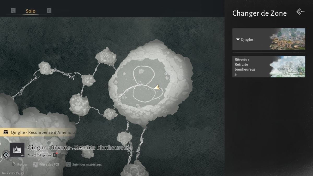 Une fois sur place, progressez simplement en suivant le sentier. Utilisez votre compétence Pas des Nuages pour franchir les rebords de la montagne jusqu’à atteindre l’extrémité de la zone, où Yi Dao vous attend pour le duel dans un paysage onirique.