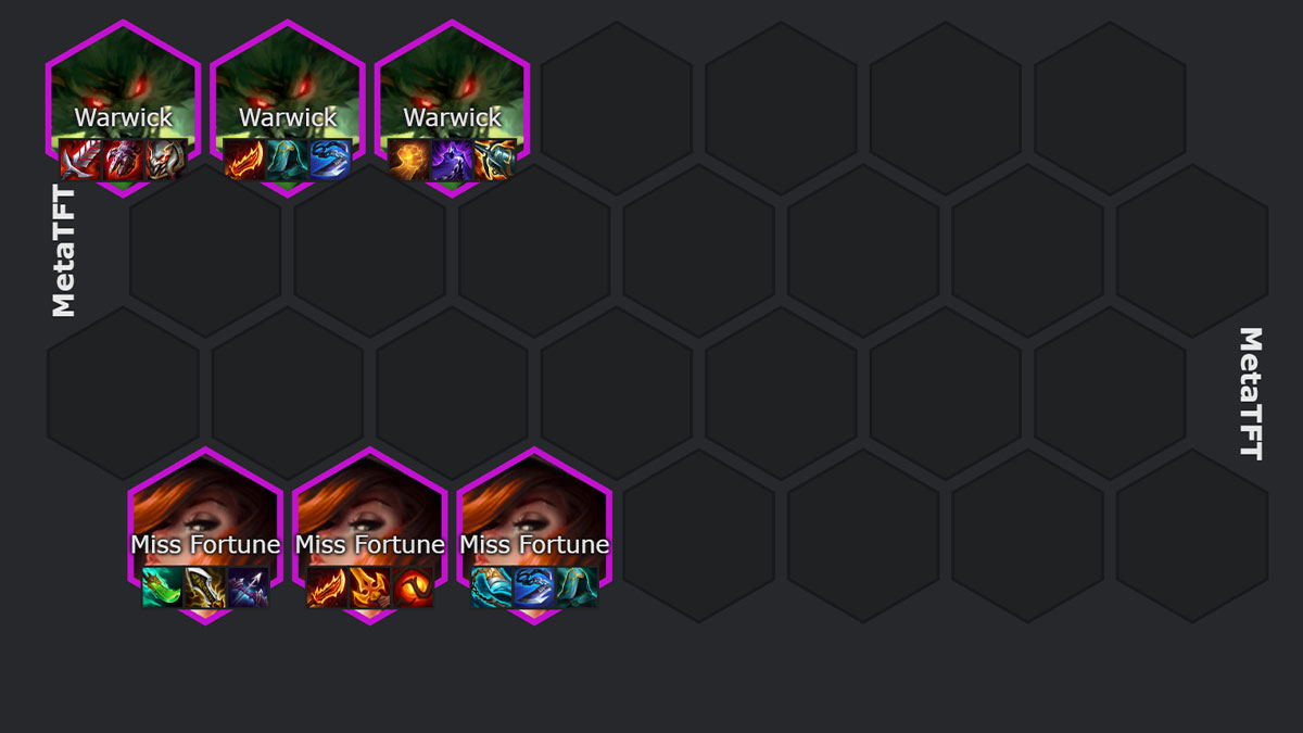 La compo Warwick Miss Fortune est une composition à ne pas sous-estimer sur le set 16 de TFT. Elle repose sur Warwick, en carry principal, avec Miss Fortune en Carry secondaire qui pourra être remplacée en late par Lucian & Senna. C’est une composition très flexible avec des unités qui ne sont pas les plus contestées de manière générale. Avec un bon start item AD, c’est une composition à connaître, car elle peut vous apporter de très bons résultats.