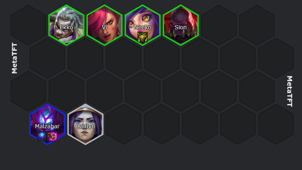 - Backline : Caitlyn, Kow’Maw, Malzahar