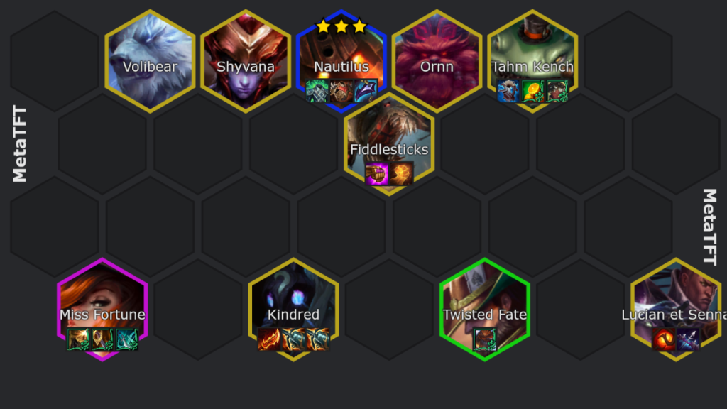 - Tu peux ensuite commencer à enlever des Bilgewater pour rentrer des 5 cost comme Lucian & Senna, Ornn, Volibear, Shyvana, Fiddlestick