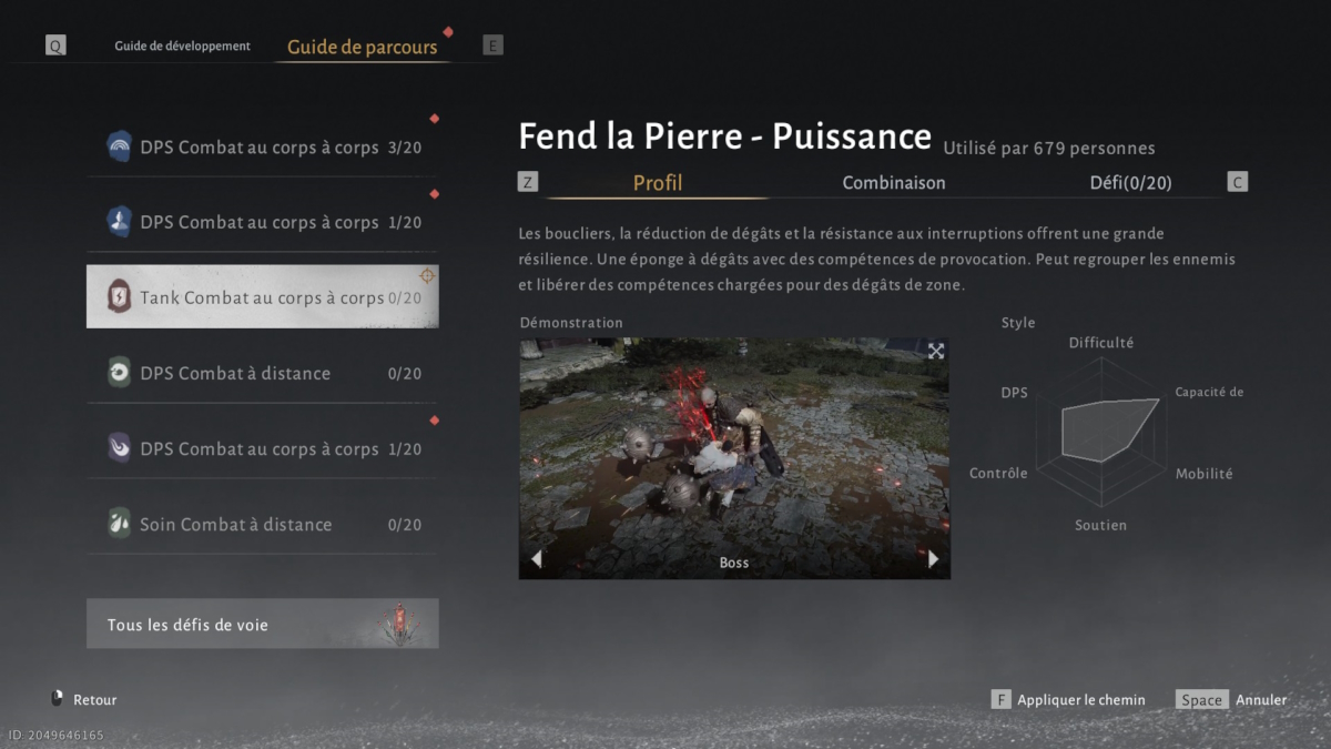 La combinaison la plus fiable pour un tank repose sur deux armes complémentaires : la Lame Tonnerre et la Lance Fende-Tempête. Ensemble, elles créent un cycle parfait autour de la mécanique d‘Esprit Combatif (Fighting Spirit), que vous accumulez avec une arme pour le dépenser stratégiquement avec l’autre.