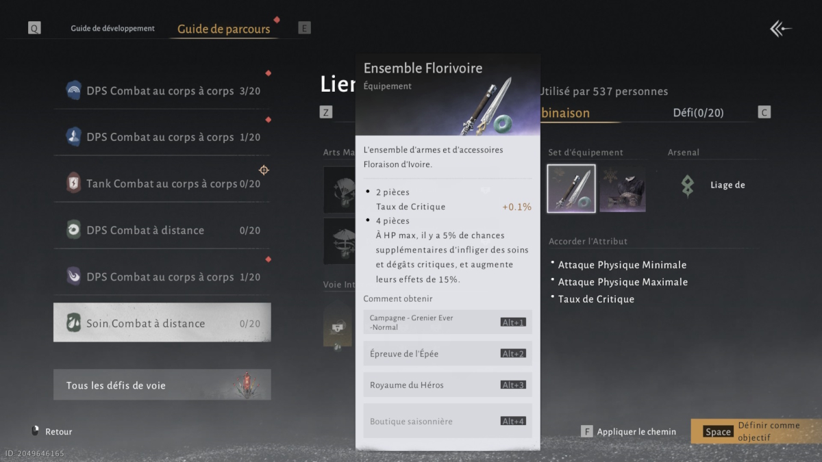 • Ensemble Florivoire : impossible de passer à côté de cet ensemble qui augmente à la fois votre taux de critique et l’efficacité de vos soins critiques. Ses quatre pièces transforment littéralement votre rendement, faisant de Florivoire la base de votre équipement.