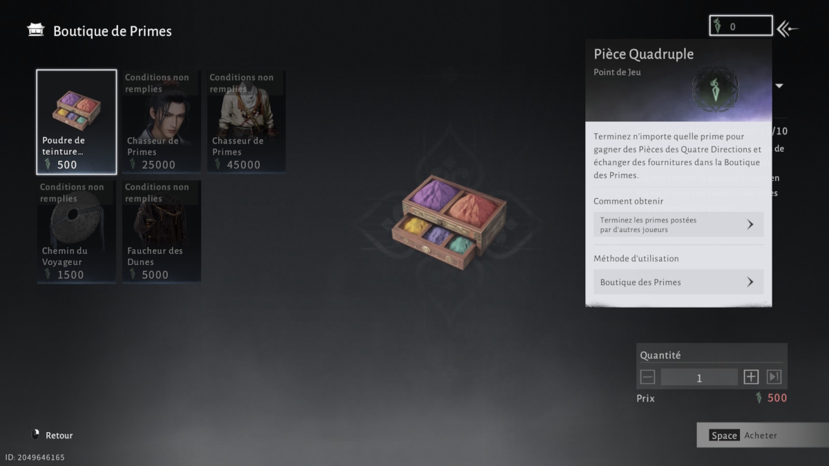 Qu’elles soient assignées par des PNJ ou d’autres joueurs, les primes rapportent cette devise spécifique. Les Pièces quadruples sont ensuite utilisées dans la boutique des Primes pour obtenir des objets cosmétiques et du mobilier pour votre logement.
