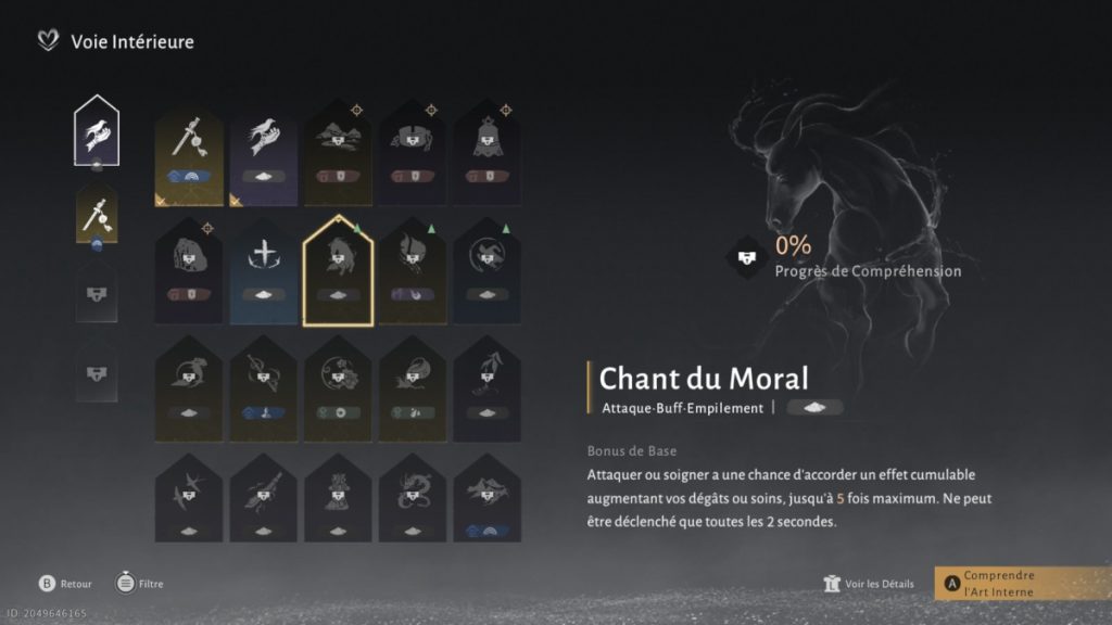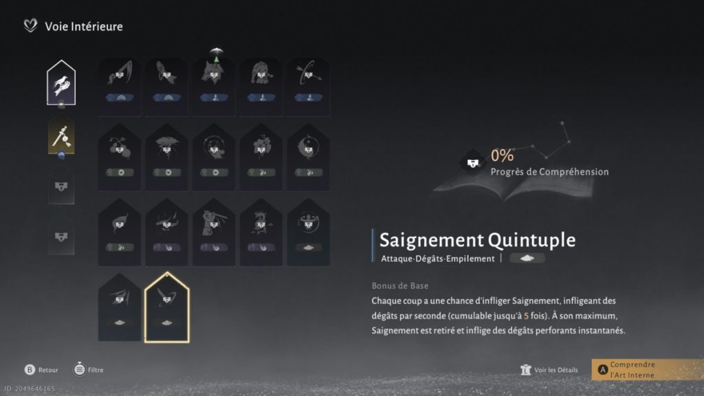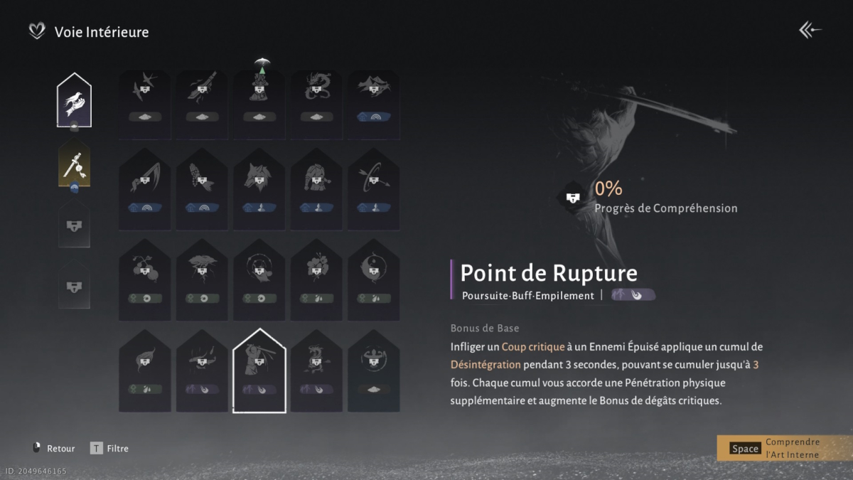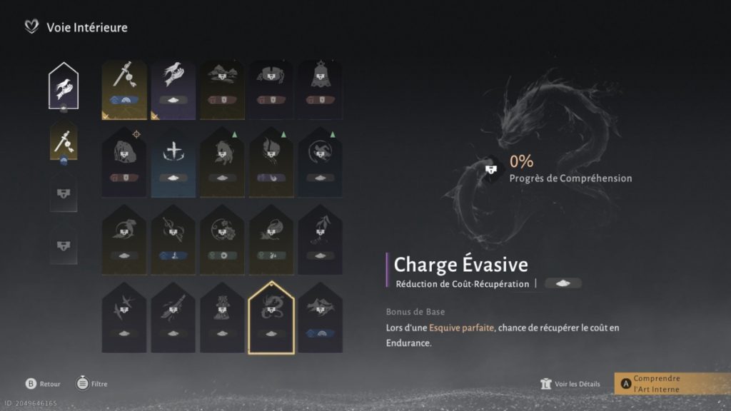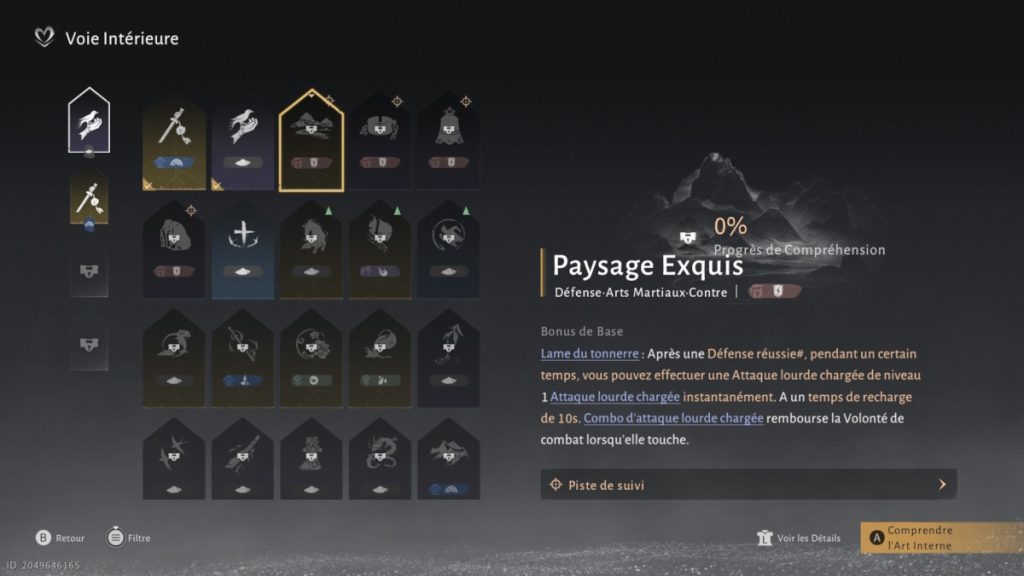 Recommandée pour les joueurs utilisant la Lame Tonerre, cette voie intérieure met l’accent sur un style défensif basé sur le contre plutôt que sur l’esquive. Elle récompense la patience et le sang-froid, transformant chaque attaque adverse en opportunité de riposte.