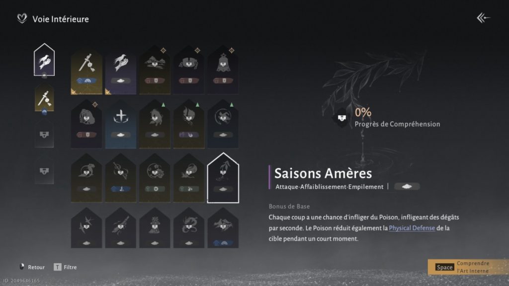 Là où Saignement Quintuple consomme les PV de l’ennemi, Saisons Amères prépare le terrain pour une offensive plus soutenue, surtout dans les combats prolongés contre des ennemis robustes.
