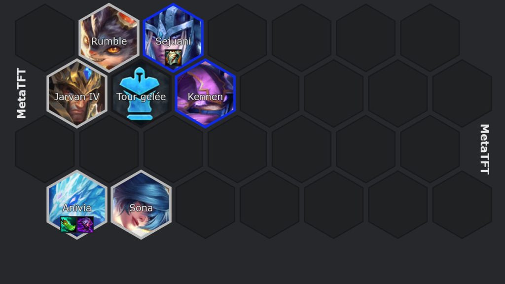 Tu arrives vers le niveau 6 et tu cherches à stabiliser ton board et à débloquer les champions midgame comme Kennen et Kobuko & Yuumi. On va commencer également à ajouter le trait Freljord.
