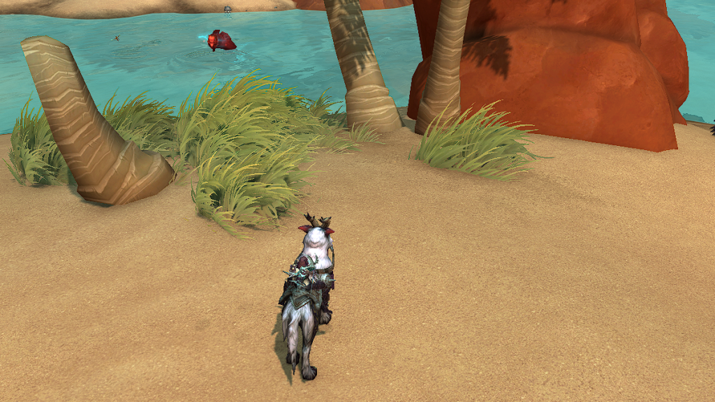- Solution : Au bout de la chaîne, près de l’eau et des ossements massifs plantés dans le sable.