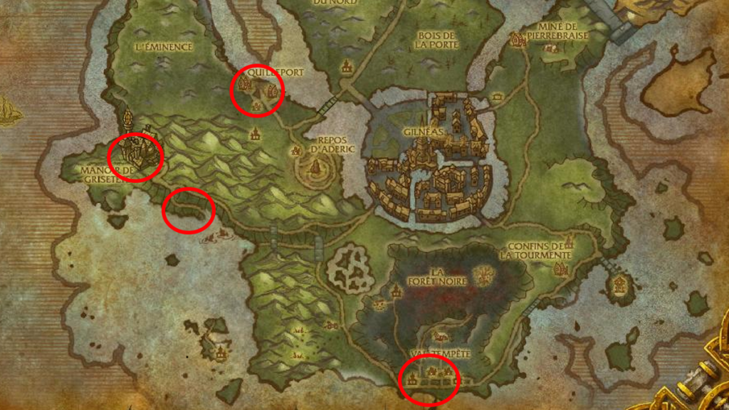 - Au début et avant de retrouver Genn Grisetête : coordonnées 70.8 56.6 dans la ville de Gilnéas