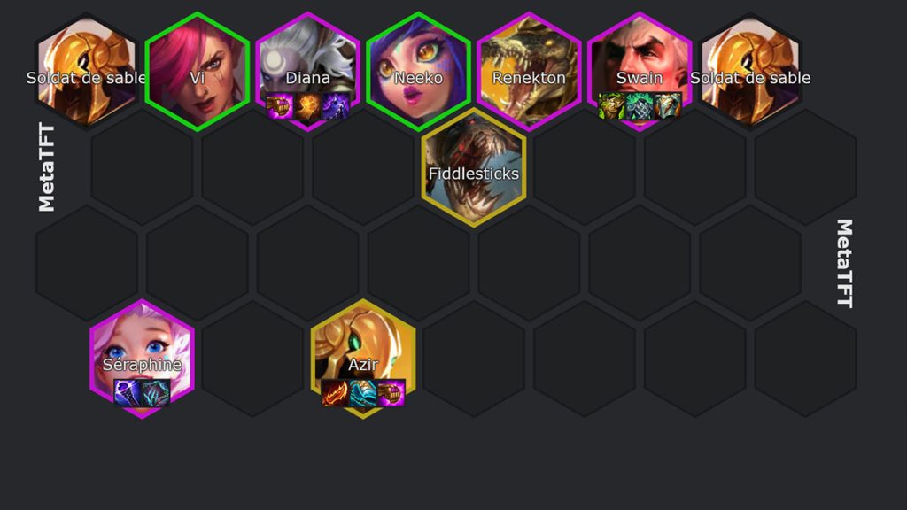 • L’objectif est d’essayer de ne pas trop subir en early game. Pour jouer Azir, on veut fast 8/9 pour se donner plus de chance de jouer la composition et avoir le temps de faire les quêtes pour débloquer les Shurima