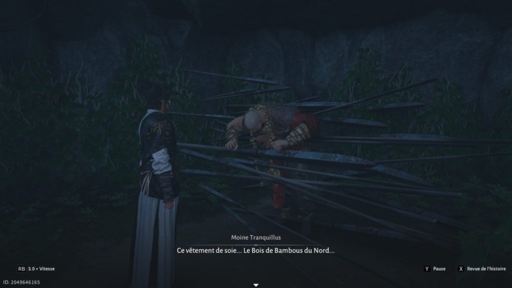 Revenez discrètement auprès de l’érudit pour assister à une cinématique. Une fois terminée, il ne reste qu’un mouchoir brodé à ramasser, premier indice tangible.