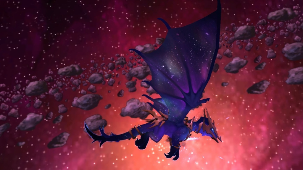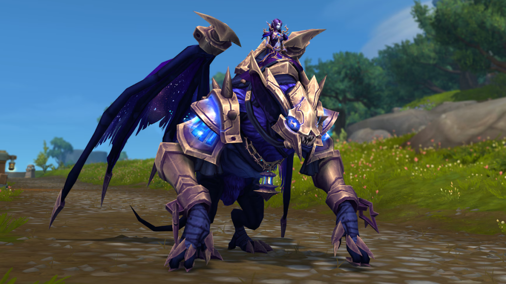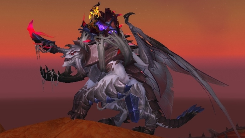 Monture octroyée à coup sûr en trois exemplaires par raid après avoir vaincu le Dimensius l’Omni-dévoreur dans le troisième raid de The War Within, la Manaforge Omega, en Mode Mythique le taux d’obtention de cette monture passera à 1% une fois l’extension Midnight déployée, rendant son obtention très, très difficile.