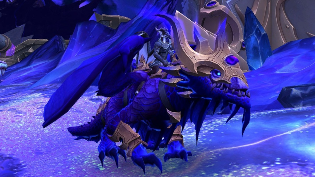 Monture octroyée à coup sûr en trois exemplaires par raid après avoir vaincu la Reine Ansurek dans le premier raid de The War Within, le Palais des Nérub’ar, en Mode Mythique le taux d’obtention de cette monture passera à 1% une fois l’extension Midnight déployée, rendant son obtention très, très difficile.