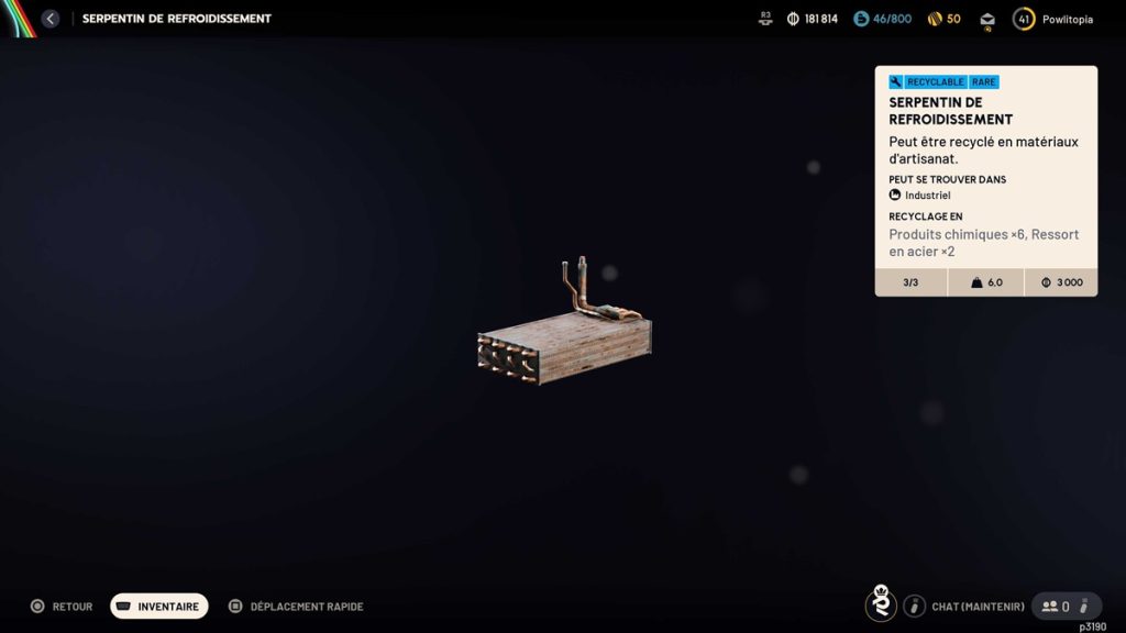 Une fois sur place, n’hésitez pas à fouiller tout ce que vous pouvez, dont les fameuse grosses boites de ferraille qui contiennent pas mal de loot. Nous n’allons pas vous mentir, mais chez nous, nous n’avons vraiment pas eu de mal à en récupérer, et lorsque l’on se penche sur les RS, il semblerait bel et bien que ce soit l’un des items les moins compliqués à avoir ! Voici les éléments susceptibles de vous offrir des serpentins de refroidissement :