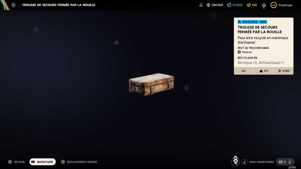 Et dans votre aventure, vous avez forcément croisé ou même ramassé des trousses de secours fermées par la rouille, mais à quoi peuvent-elles bien servir puisque nous ne pouvons pas nous soigner avec ? Eh bien sachez que ces dernières sont bien utiles, oui oui ! En effet, vous allez en avoir besoin pour pouvoir améliorer votre Laboratoire médical au niveau maximum, c’est-à-dire au niveau 3.