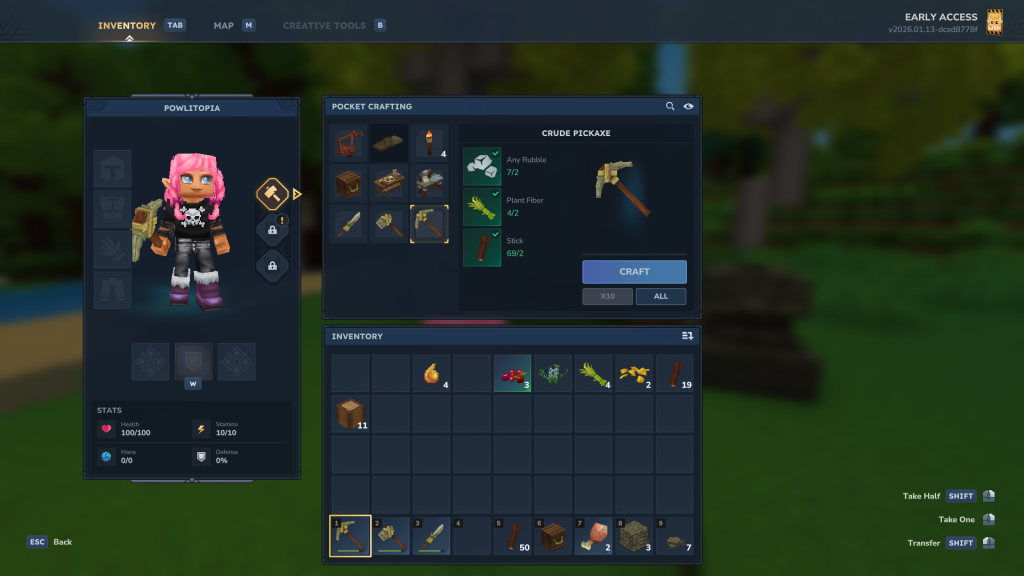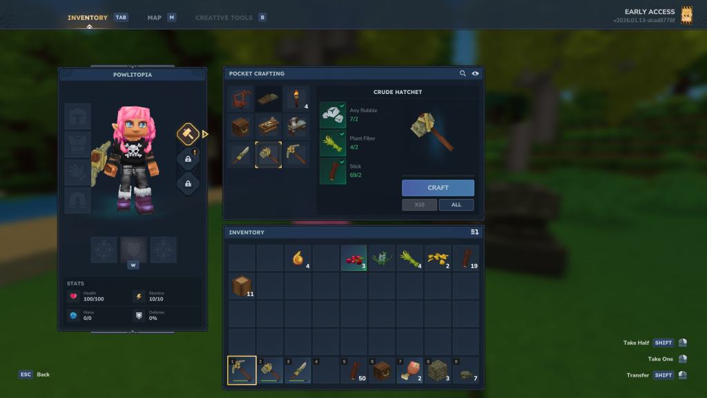 Fabriquer les outils de base dans Hytale