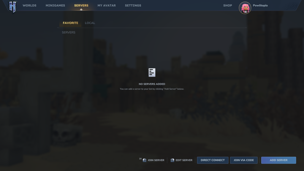 Autre possibilité pour jouer en ligne sur Hytale, c’est de rejoindre un serveur d’ores et déjà existant. Pour ce faire, vous devez vous rendre dans le menu principal de votre jeu, puis cliquer sur « Servers ».
