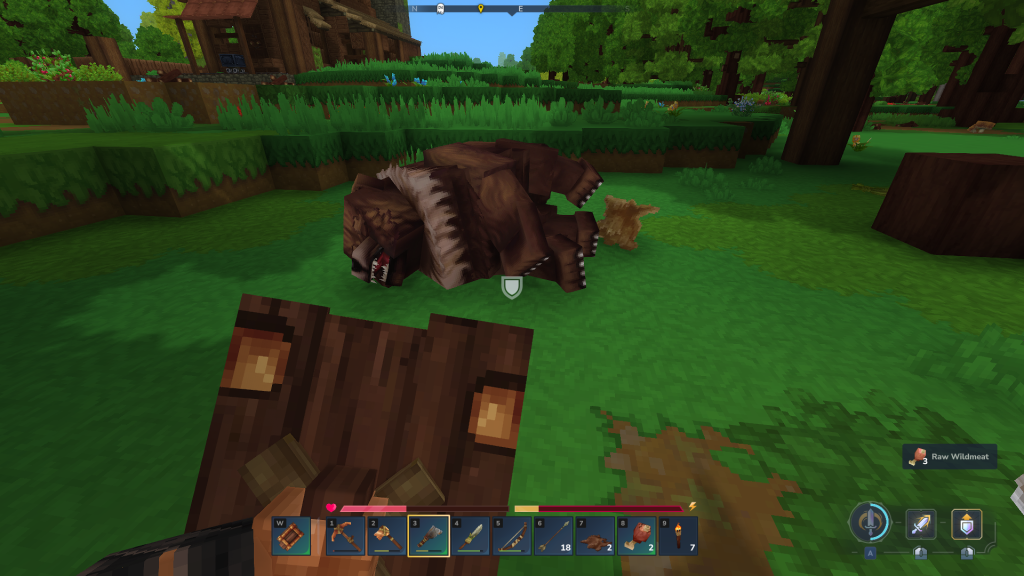 Pour obtenir cet item, vous allez devoir tuer pas mal de bêtes afin de récoler de la peau, et de différentes sortes. Ici, dans le cas où nous voulons par la suite pouvoir crafter/fabriquer du cuir épais, nous nous sommes concentrés sur les grosses bêtes et notamment les ours : lorsque vous les tuer, ces derniers drop de la viande ainsi que de la peau épaisse (attention, les ours font assez mal).