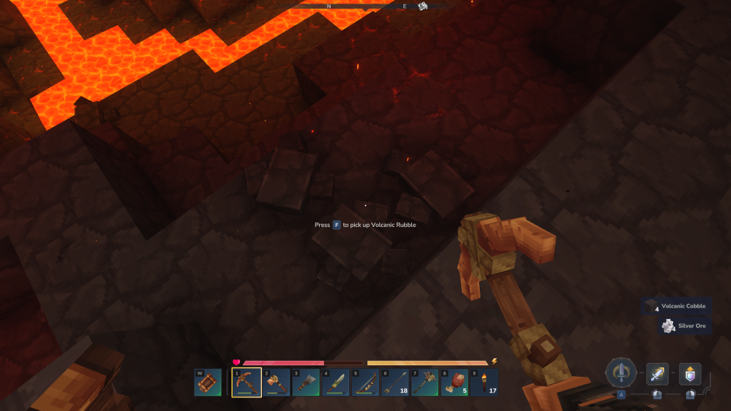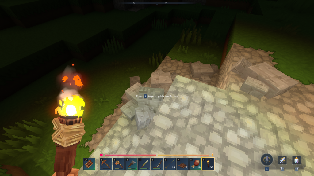 Par exemple, en vous baladant sur les côtes dans le biome Emerald Grove au niveau des plaines, vous trouverez des débris de pierre (stone rubble), de petite, moyenne ou grande taille, et si vous vous aventurez plus loin, dans les forêts, vous pourrez également trouver des débris de marbre, ou bien encore, de pierres mousseuses. Dans les grottes, au fond de l’une d’elles au niveau d’un lac de lave, nous avons trouvé des débris volcaniques.