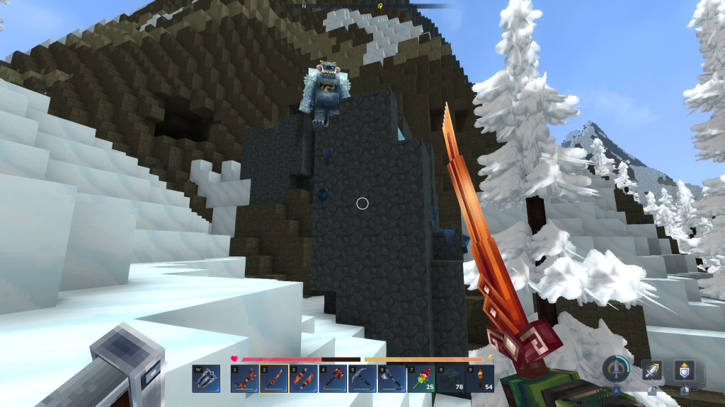 Une fois sur place, vous verrez rapidement des minerais se dessiner dans le sol ou bien sur les montagnes, dont les minerais de cobalt : ces derniers sont de couleur bleue. De plus, nous en avons également trouvé du côté du biome neige ! Ici, pas mal de fer mais aussi de cobalt.