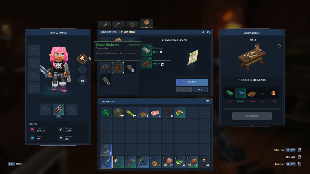 Afin de pouvoir agrandir votre inventaire à travers le titre d’Hypixel Studios, vous allez devoir passer par votre Établi. En effet, c’est grâce à celui-ci que vous allez pouvoir gagner de la place, et pas qu’un peu.