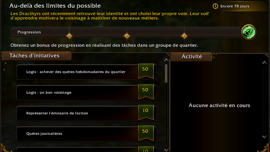 - Chaque Tâche d’initiative terminée remplit légèrement la barre de progression d’Initiative du mois en cours. Celle-ci est commune à tout le Quartier