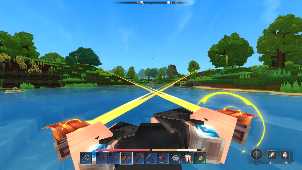 En effet, munissez-vous de dagues (double couteau/poignard), puis, une fois dans l’eau, spammez l’attaque spéciale (restez appuyés sur le clic gauche de votre souris) : votre personnage va alors parcourir une petite distance très rapidement.