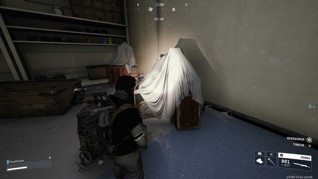 Une fois dans la zone, vous allez devoir repérer un tas de meubles recouvert par un drap blanc : approchez-vous de celui-ci, puis vous allez pouvoir interagir pour « chercher des cassettes vidéo ». Une fois cette action exécutée, mettez précieusement le tas de cassettes dans votre poche sécurisée, puis, rentrez.