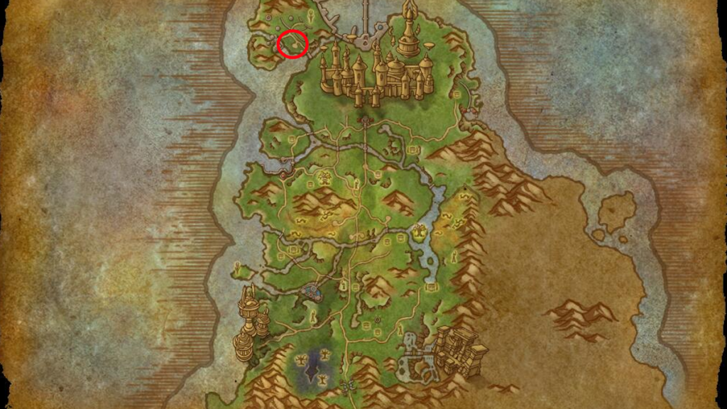 Le Don du phénix peut être trouvé sur l’Île de Haut-Soleil, au Nord-Ouest du Bois des Chants éternels, aux coordonnées 40.96, 19.45. Vous devez vous trouver dans la version de Midnight du Bois des Chants éternels pour le voir. L’élément visible de prime abord pour ce trésor est le Réceptacle de Haut-Soleil, pas le Don du phénix directement.