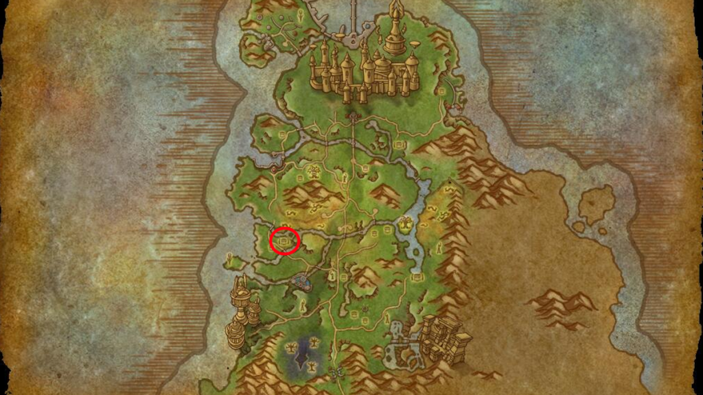 La Cuve en pierre peut être trouvée sur une plateforme au-dessus du village de Brume-d’Or, à l’Ouest du Bois des Chants éternels, aux coordonnées 40.44, 60.60. Vous devez vous trouver dans la version de Midnight du Bois des Chants éternels pour la voir.