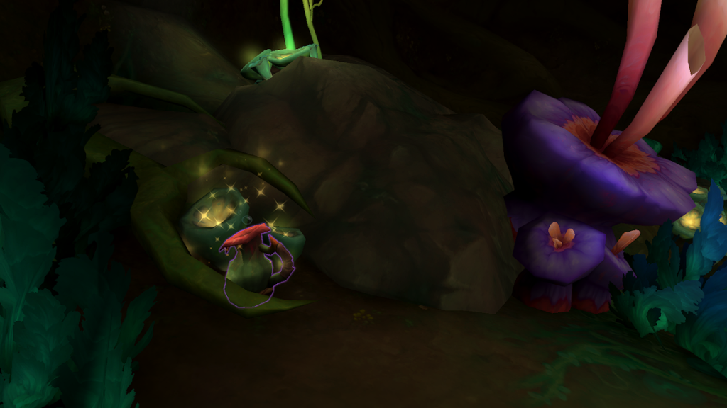 Finalement, une fois le Fluide pétillant en poche il ne vous reste qu’à aller ouvrir la Calebasse hermétiquement fermée à proximité pour obtenir votre récompense : la mascotte Sporoptère perturbé.