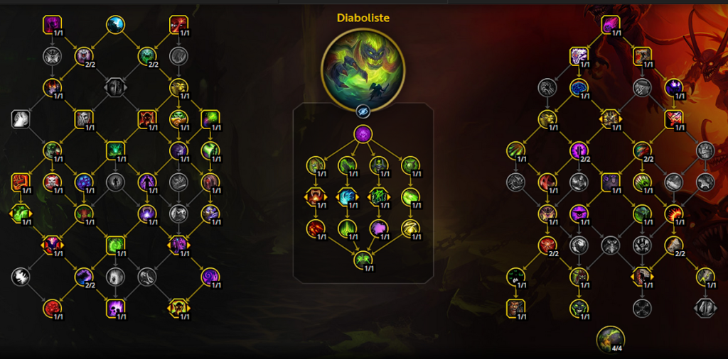 - Grimoire : seigneur des diablotins dès que possible, en conjonction avec Invocation : tyran démoniaque