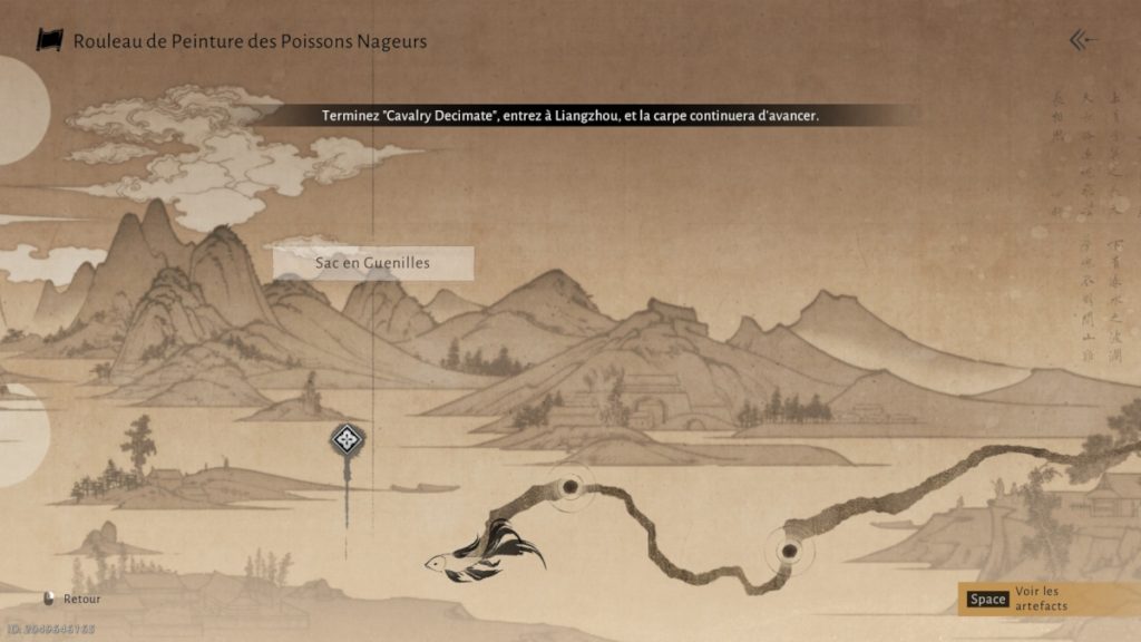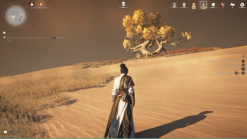 L’aventure commence avec la quête « Un bref répit ». Pour l’activer, rendez-vous au sommet d’une colline à l’ouest de Karez, où se dresse un peuplier solitaire. L’arrivée sur place déclenche une cinématique dans laquelle vous incarnez un inconnu accompagné d’un certain Hu le Guidon. Acceptez de l’aider en lui remettant cinq pièces au total : cela permet de poursuivre la scène.